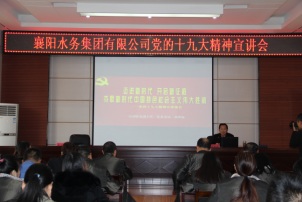 根据市国资委党委的统一安排,12月25日下午,市国资委党委委员、副主任邓世海来到beat365中文官方网站开展党的十九大精神专题宣讲。集团beat365官网本部全体干部职工、襄阳中环水务有限beat365官网班子成员及基层党支部书记和党务工作人员共50余人参加了学习。