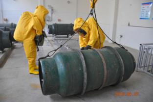 在总指挥赵建同志的哨响声下,应急救援演练活动正式开始。氯气泄漏事故模拟现场烟雾弥漫,漏氯泄漏报警仪发出尖锐的报警信号,现场指挥人员立即发出指令,启动紧急处置预案。警戒疏散小组、抢修小组、消防小组各组成员第一时间赶到事故现场,抢修人员迅速穿好防化服进入氯库,将氯瓶的泄漏点封住,放置于碱池中,防止氯气继续泄漏造成更大的危险。与此同时,警戒疏散小组设立岗哨,拉起警戒线,负责氯瓶间工作人员安全撤离。消防小组启用消防水管喷洒大量水,稀释空气中的氯气,防止空气中的氯气含量超标发生二次伤害。此次演练行动迅速,全程用时16分钟,有效处理了氯气泄漏,取得了预期效果。