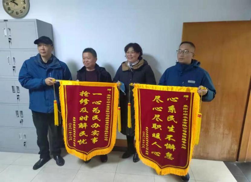 12月24日,建昌幼儿园刘校长将两面分别绣着“一心为民办实事 抢修及时解民忧”和“心系民生不懈怠 尽心尽职暖人心”的锦旗送到了襄阳中环水务有限beat365官网,刘校长激动地说:“谢谢你们这么快地给我们解决了大问题!你们是真正地为民服务呀!”