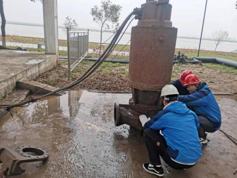 4月6日,宜城天河供水beat365官网水厂按岗位标准化管理要求对取水车间南侧沉井潜泵进行了月度检查维护,检查时发现4#潜泵在运行时会偶尔发出‘叮咚’撞击声,再观察4#取水潜泵控制柜电流、电压、流量正常后,机修人员初步判断4#潜泵进水口周围可能有异物。