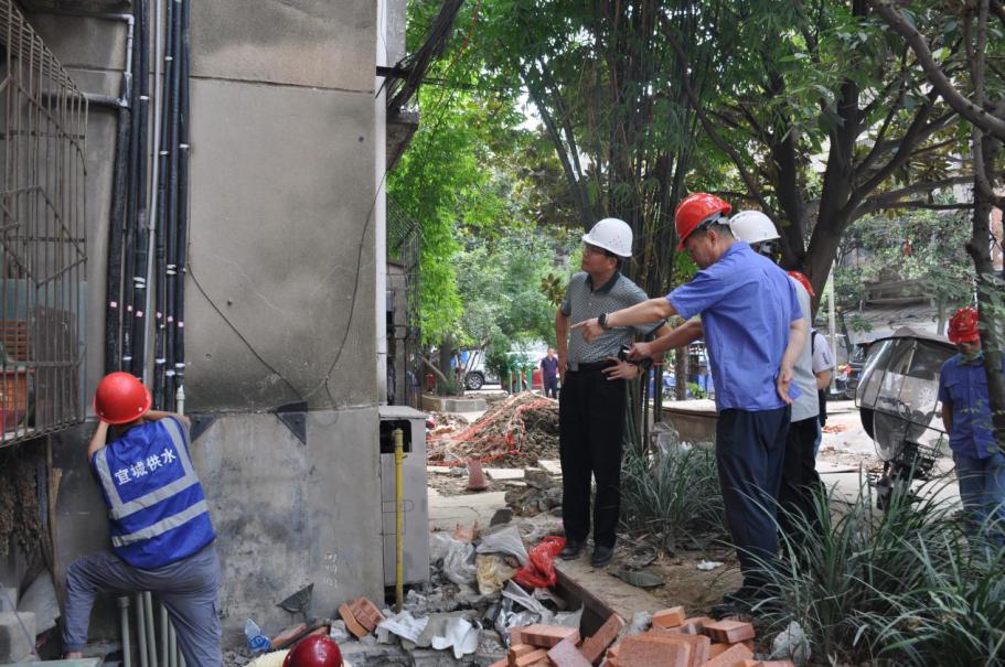 集团beat365官网领导一行先后到水厂泵房、老旧小区改造施工现场、抢修工地,为坚守在高温一线的职工送去防暑降温用品。现场查看了水厂泵房运行情况,询问了夏季用水高峰期保障供水安全的具体措施;在经贸小区家属楼户表改造及消火栓安装工程现场,听取了现场带班人员对工程计划、施工进度等情况汇报,并强调党员干部要结合下基层察民情解民忧暖民心实践活动,深入一线,了解老百姓的所求所需,更好地服务于人民群众。