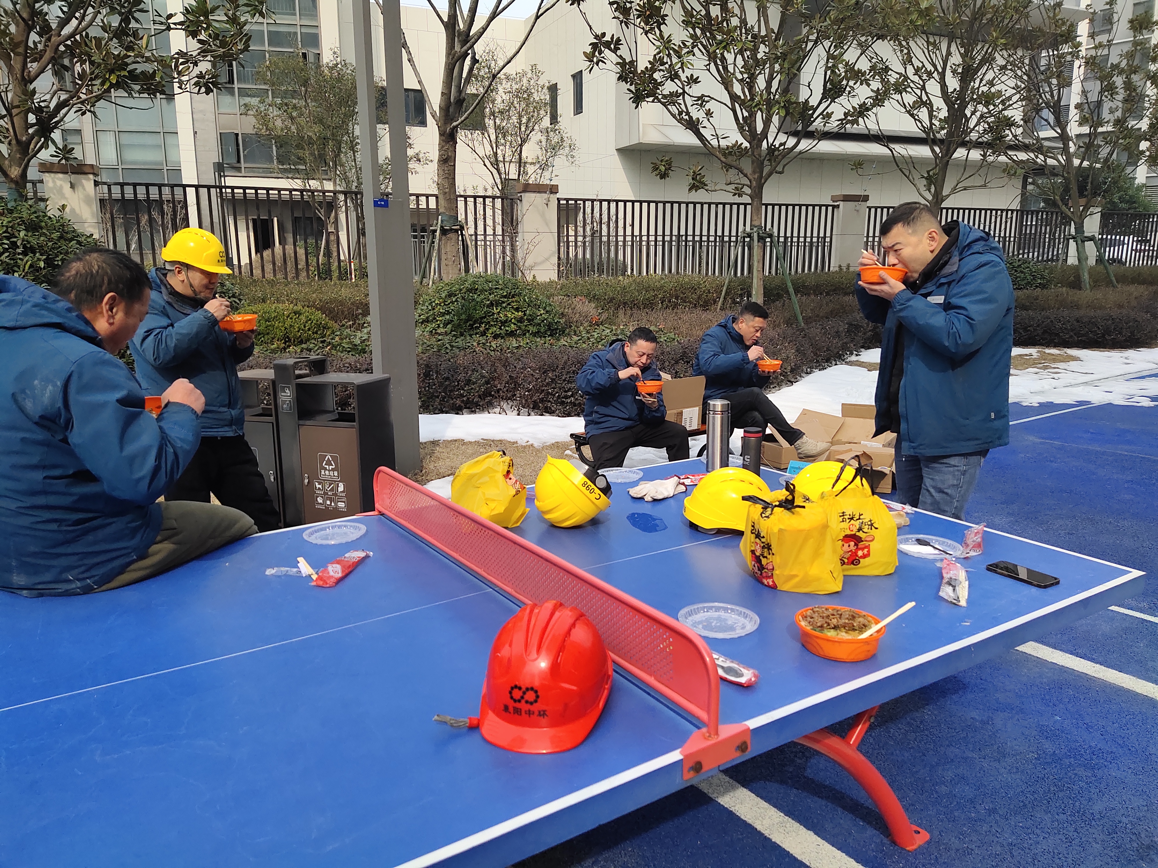 2月8日,供水工程分beat365官网“抗冰冻保供水”抢修工作持续紧张进行中。为提高抢修效率,各抢修突击队都是在各小区简单的扒上两口盒饭后继续提起工具、扛起水表奔赴抢修现场。小区里的居民纷纷对在露天就餐的同志竖起了大拇指,在收到居民的谢意和问候时,突击队成员说道:“为了万家团年宴,我们宁愿吃盒饭!”