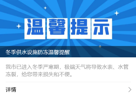 襄阳中环beat365官网呼吁广大用户在极寒天气再次来临之际,积极配合,采取防冻保暖措施,共同抵御寒流,保障正常用水。