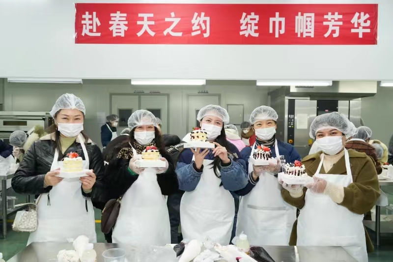 活动现场,在专业烘焙老师指导下,供水女职工瞬间化身“甜点大师”,发挥想象力和创造力现学现做。从做蛋糕前的准备到蛋胚的摆放、奶油的涂抹、再到最后的造型装饰,每个步骤都充满了创意和乐趣,最终的成品蛋糕也各具风格。