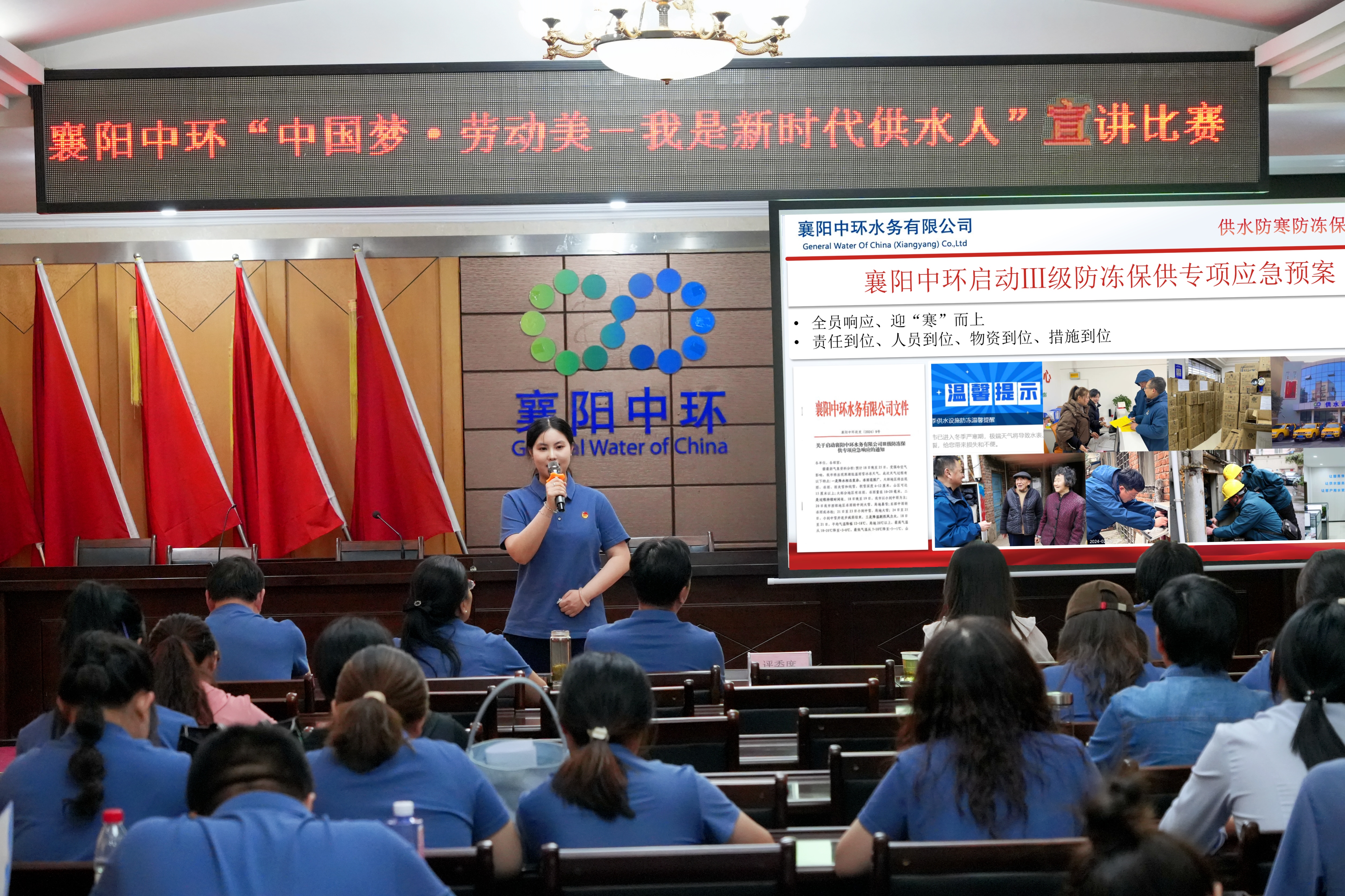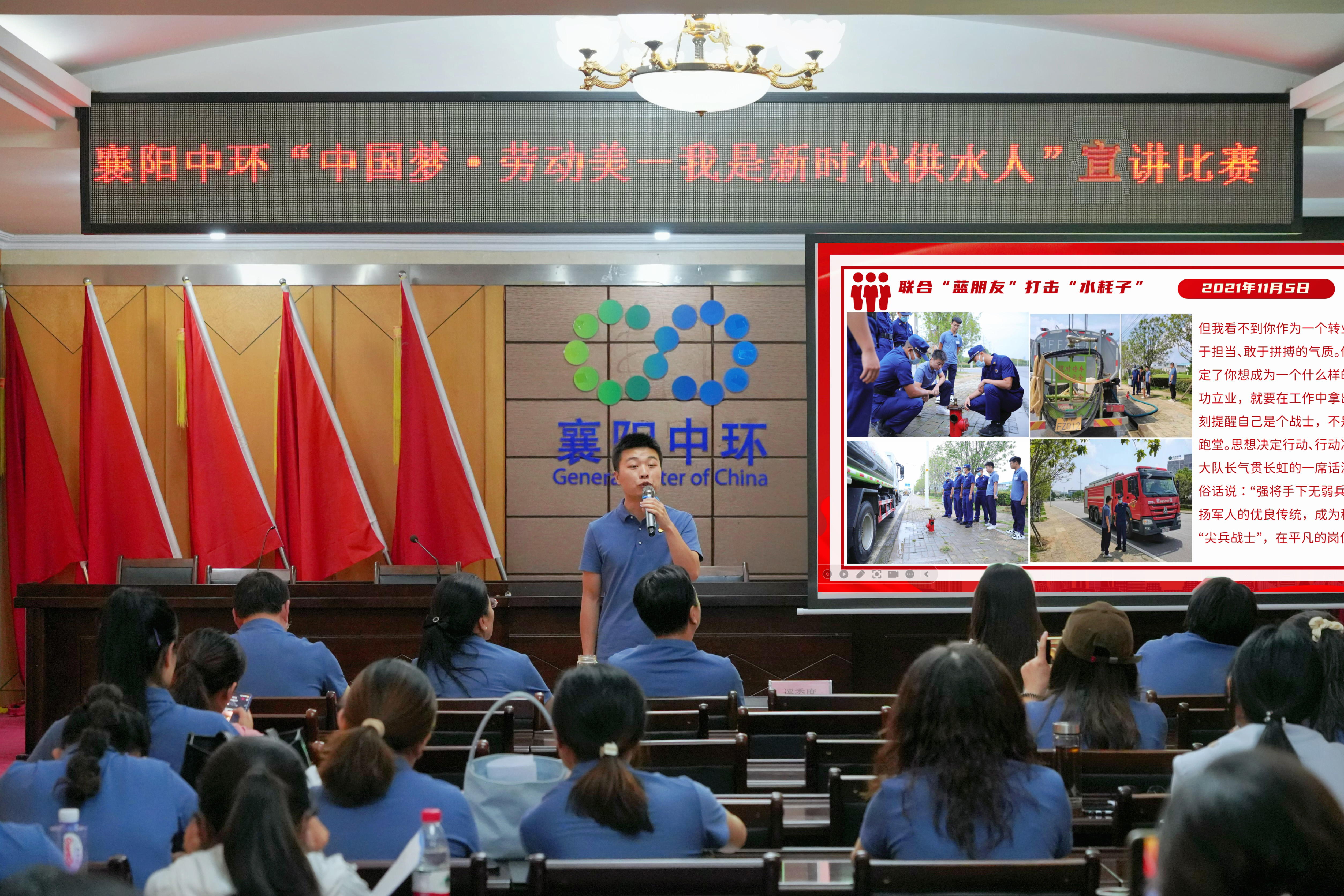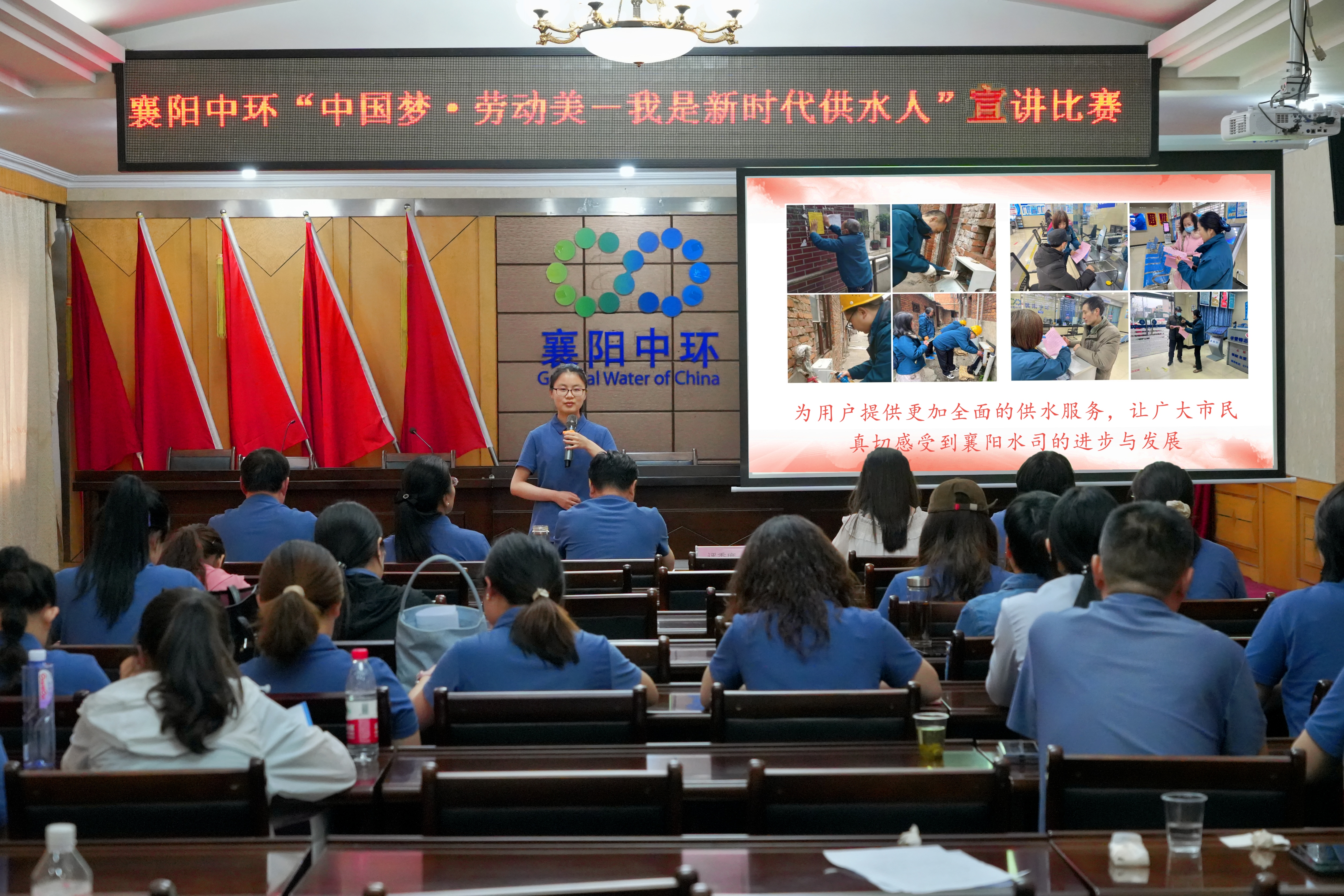 5 月29日下午,襄阳中环水务有限beat365官网工会举办了“中国梦·劳动美——我是新时代供水人”主题宣讲比赛。25位参赛选手为现场观众献上了一场动人心弦的视听盛宴。