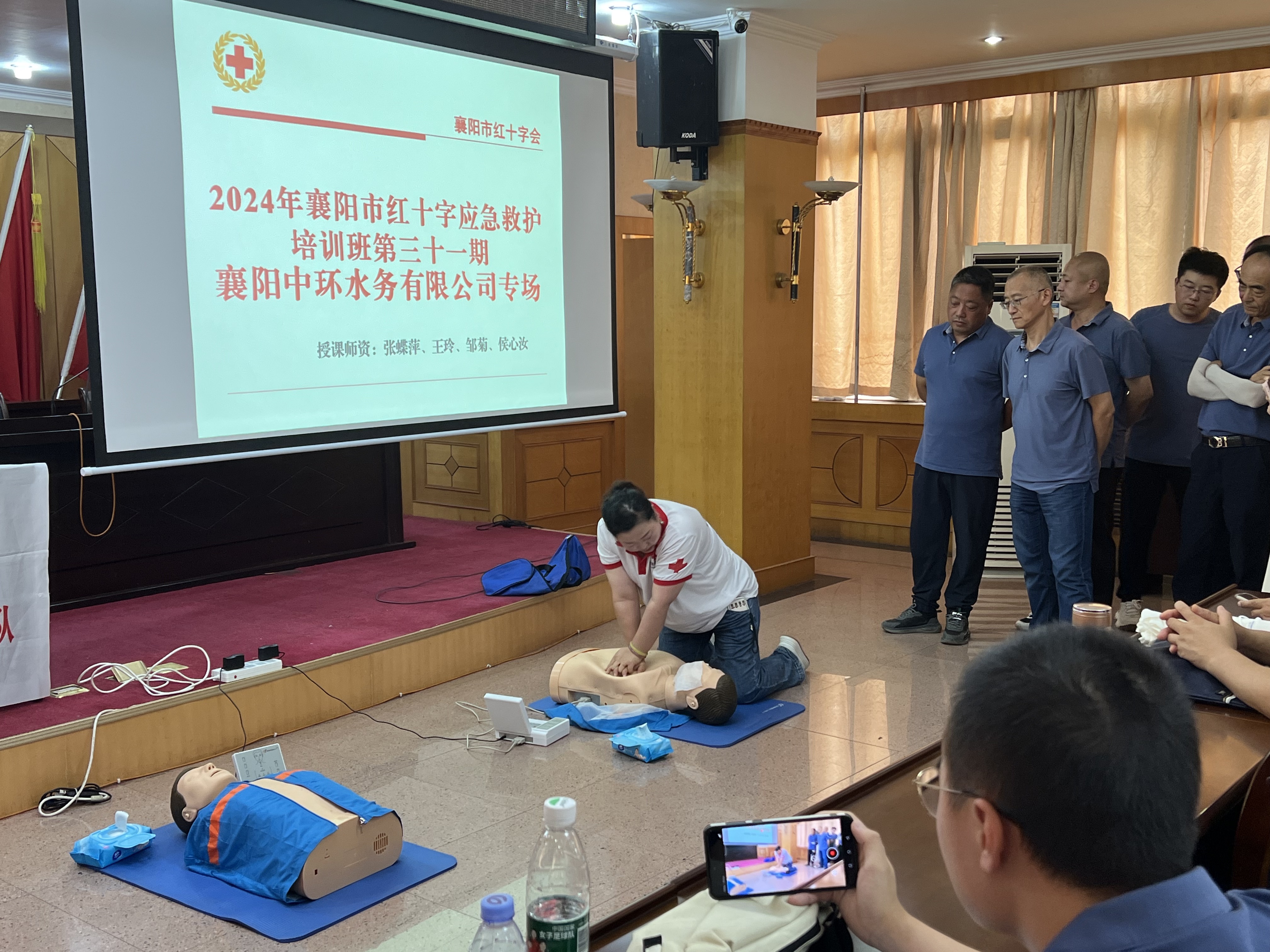 为推进beat365官网应急救护宣传教育,提升广大员工面对突发灾难和意外伤害时的自救与互救能力,襄阳中环水务有限beat365官网与市红十字会携手合作,成功举办了一场应急救护培训活动。活动于7月4日拉开帷幕,beat365官网全体专(兼)职安全员及其他部分职工共计40人参加了此次培训。