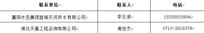 招标人:襄阳水务集团宜城天河供水有限beat365官网